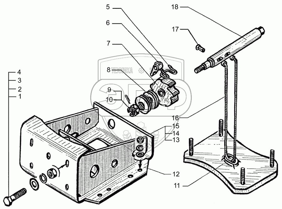Каталог запасных частей к технике: КрАЗ-65055-02. Держатель запасного колеса