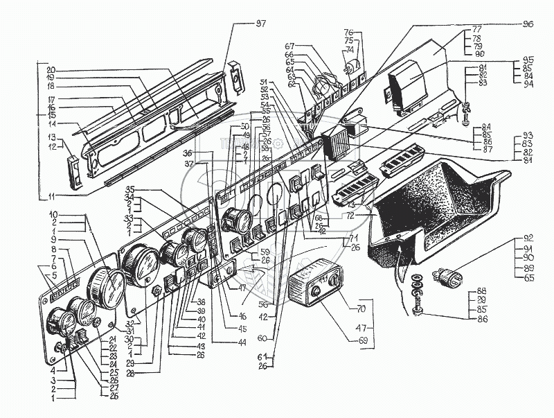 Каталог запасных частей к технике: КрАЗ-65055-02. Панель приборов