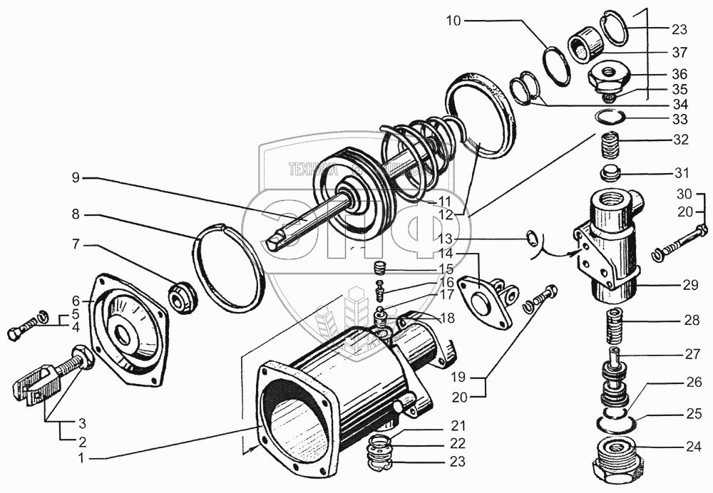 Каталог запасных частей к технике: КрАЗ-65055-02. Пневмогидроусилитель сцепления