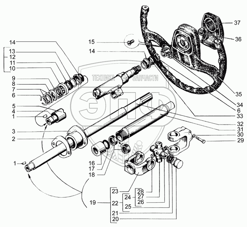 Каталог запасных частей к технике: КрАЗ-65055-02. Рулевая колонка с колесом
