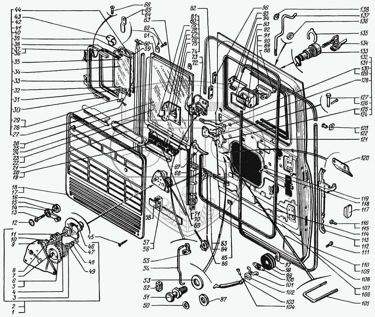 Каталог запасных частей к технике: КрАЗ-65055. Дверь кабины