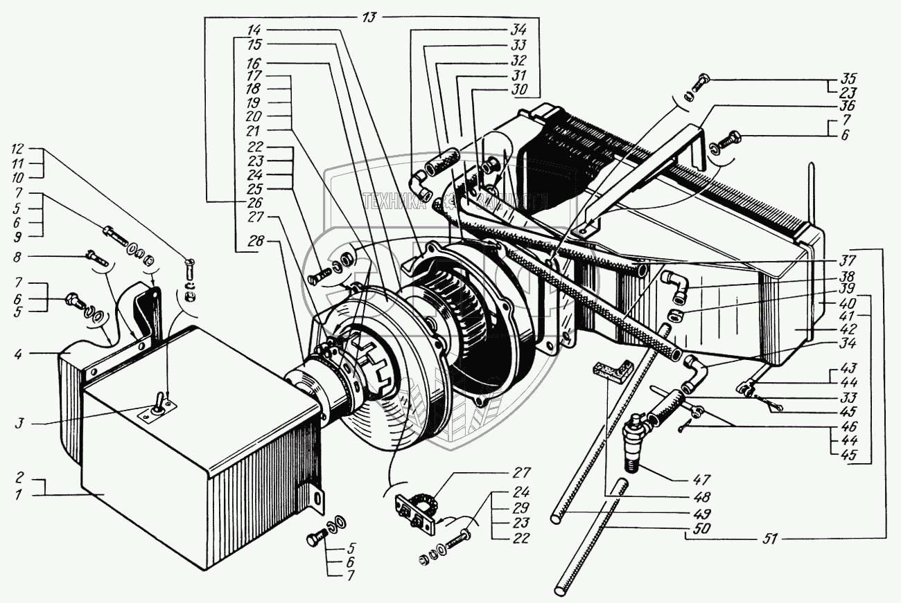 Каталог запасных частей к технике: КрАЗ-65055. Отопитель кабины дополнительный и шланги