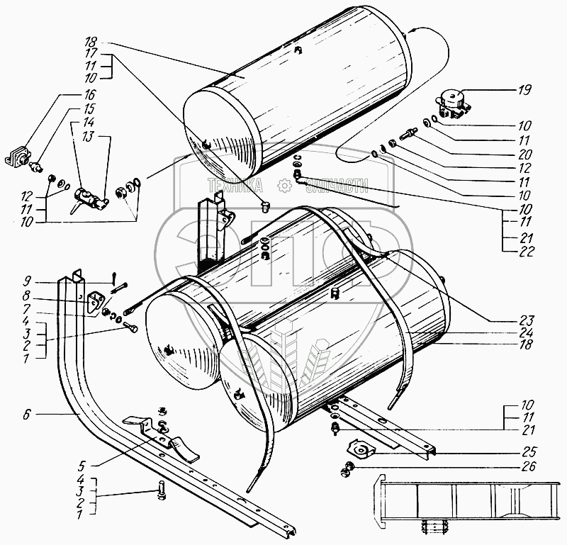 Каталог запасных частей к технике: КрАЗ-65055. Ресиверы