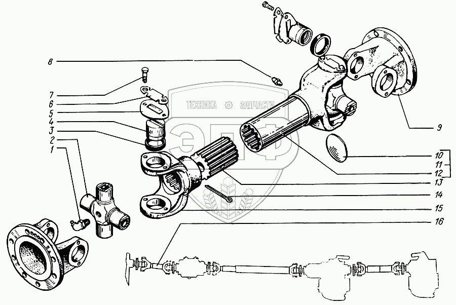 | 16 | 65053-2202010-10 | Вал карданный в сборе | Нет на складе |