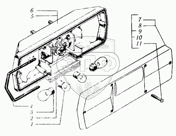 | 6 | ФП130-3716100-В | Корпус правого фонаря в сборе | Нет на складе | |