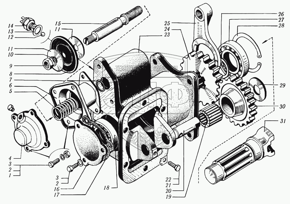 Каталог запасных частей к технике: КрАЗ-6510. Коробка отбора мощности
