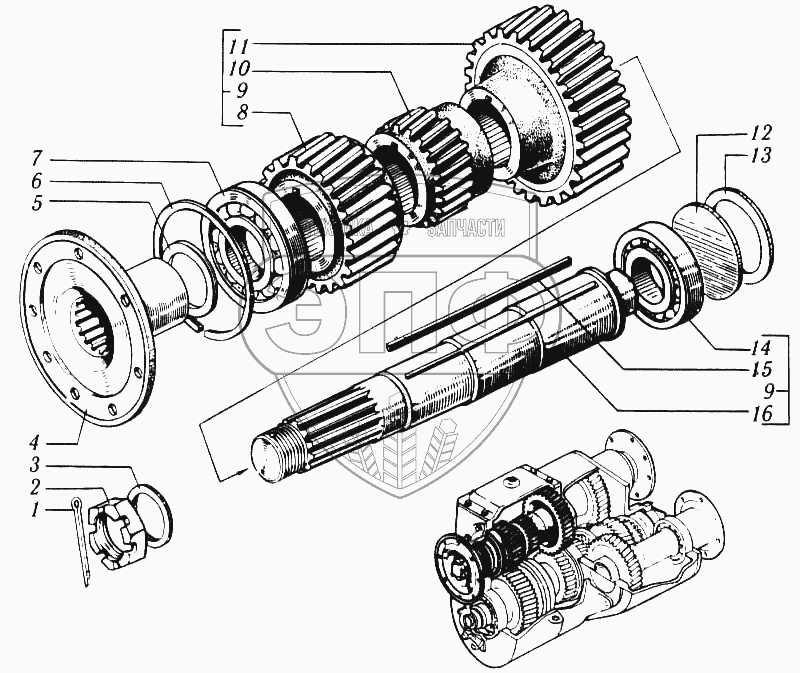 Каталог запасных частей к технике: КрАЗ-6510. Вал ведущий и шестерни