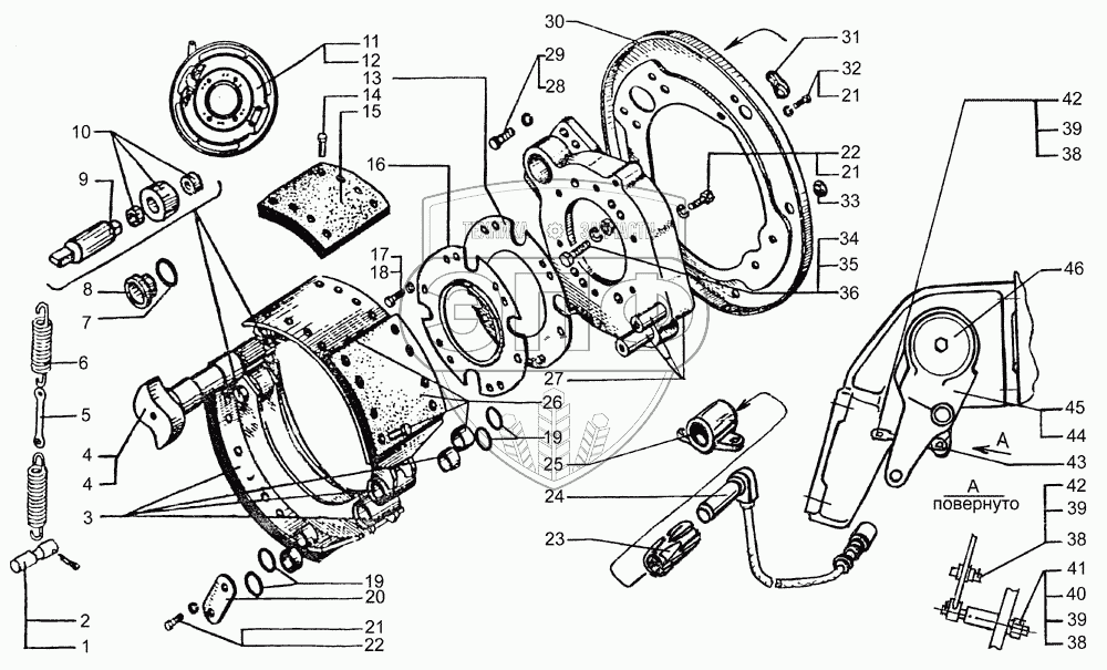 | 11 | 5133В2-3501004-000 | Тормозной механизм правый в сборе | Нет на складе | |