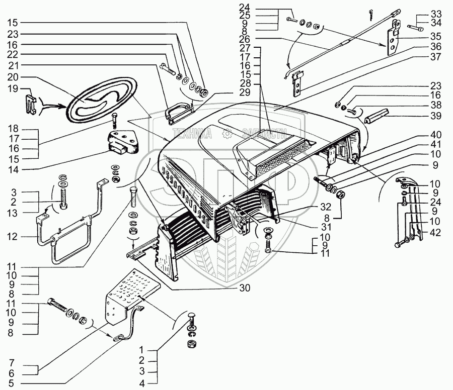 Каталог запасных частей к технике: КрАЗ-7133H4. Облицовка радиатора и капот