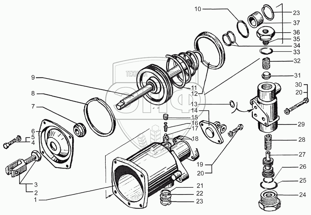 Каталог запасных частей к технике: КрАЗ-7133H4. Пневмогидроусилитель сцепления