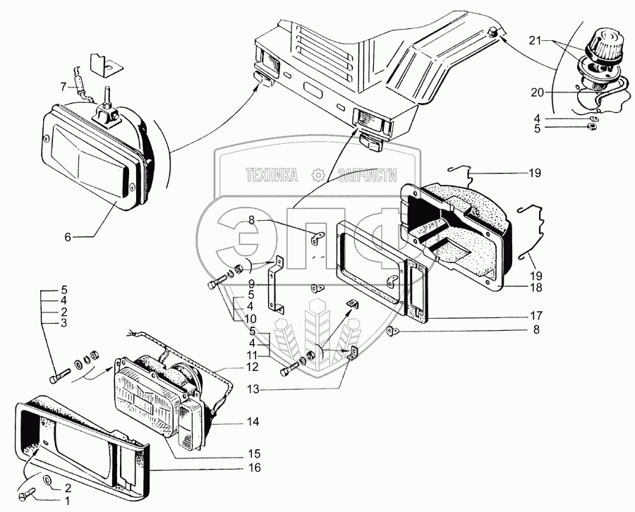 Каталог запасных частей к технике: КрАЗ-7133H4. Приборы световые передние