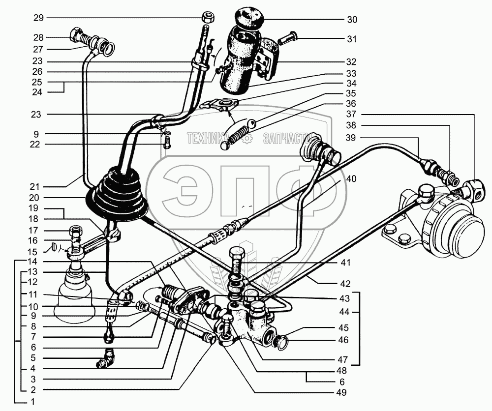 Каталог запасных частей к технике: КрАЗ-7133H4. Рычаг переключения передач, кран управления
