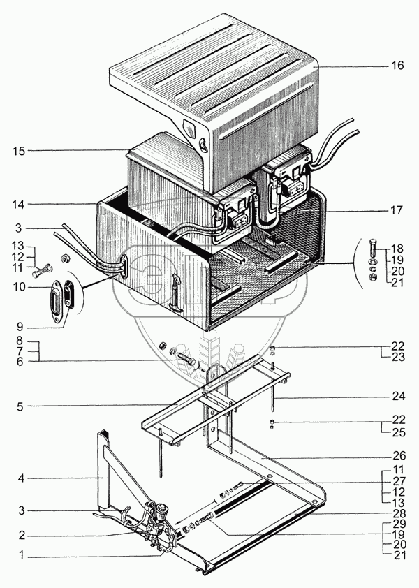 Каталог запасных частей к технике: КрАЗ-7133H4. Установка аккумуляторных батарей
