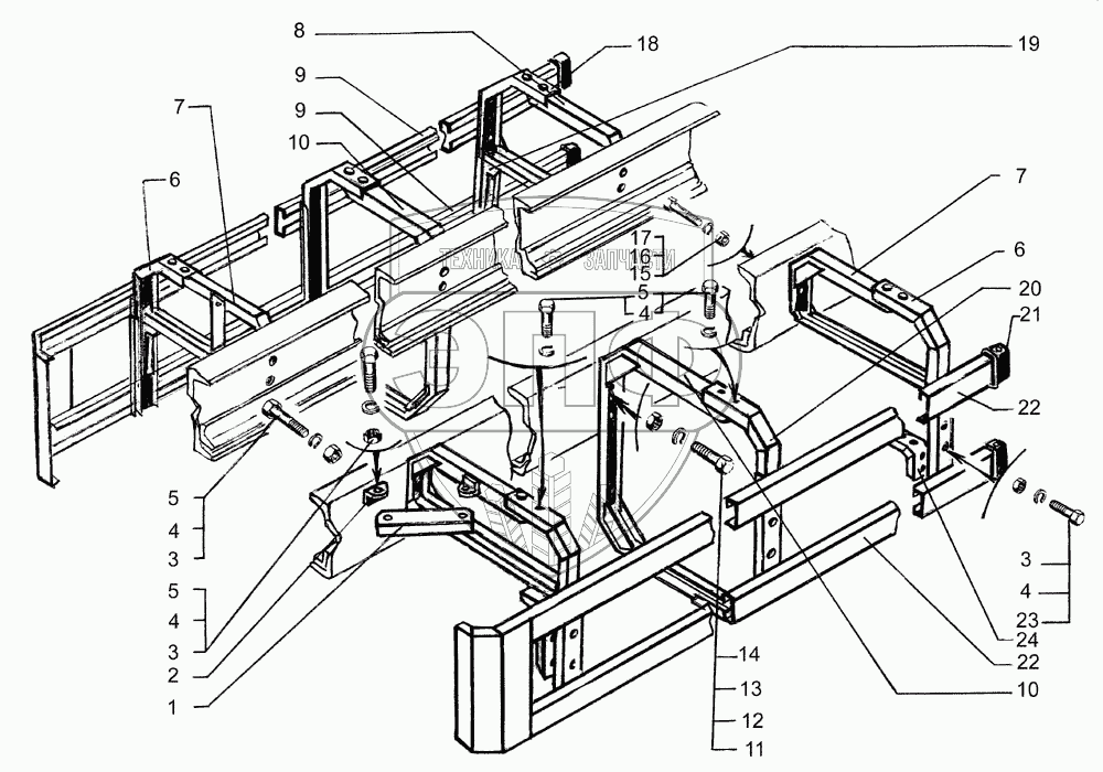 Каталог запасных частей к технике: КрАЗ-7133H4. Установка бокового защитного устройства