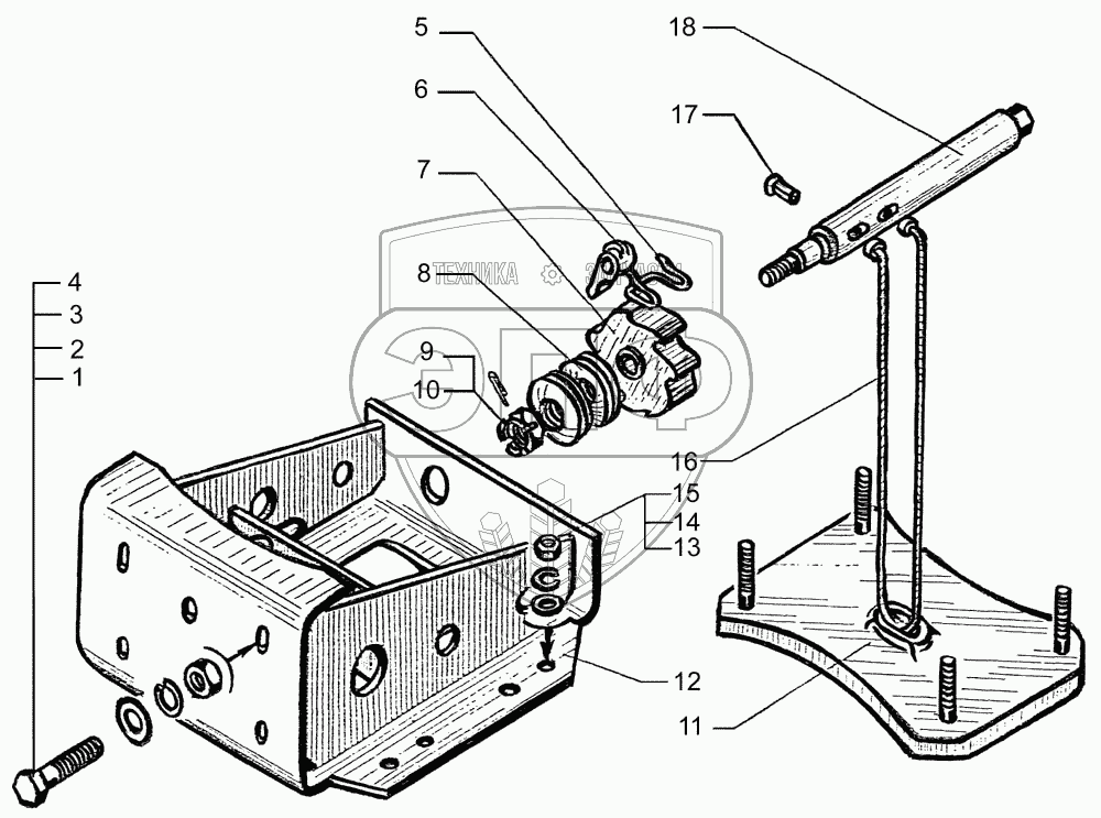 Каталог запасных частей к технике: КрАЗ-7133С4. Держатель запасного колеса