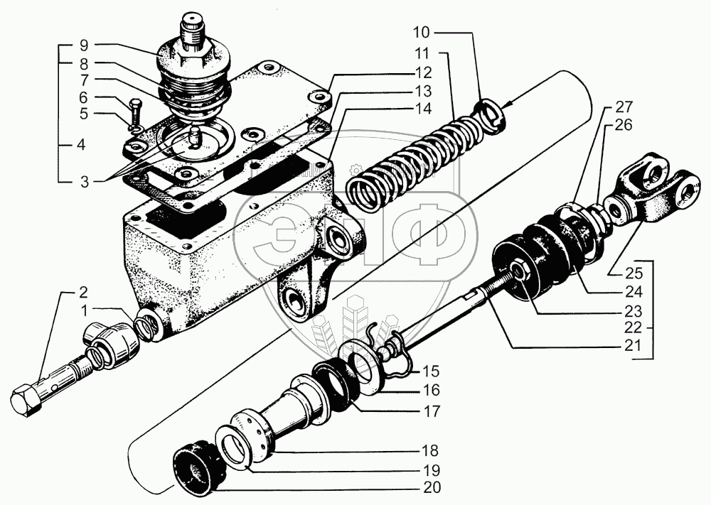 Каталог запасных частей к технике: КрАЗ-7133С4. Главный цилиндр выключения сцепления