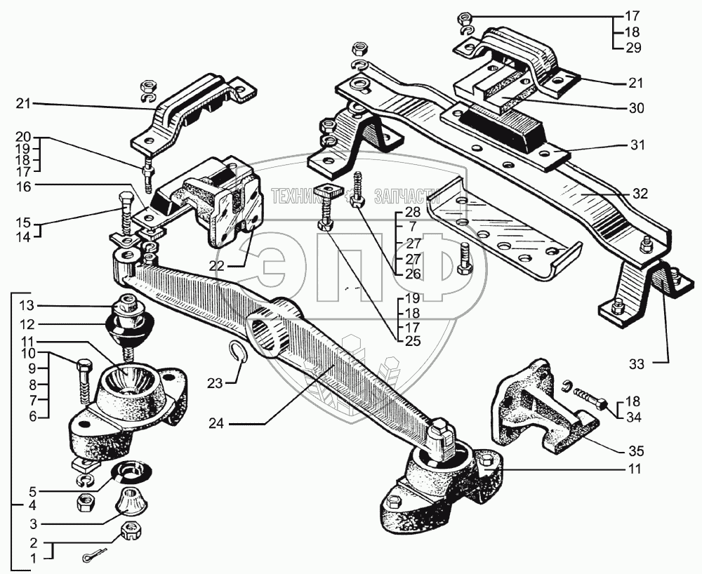 Каталог запасных частей к технике: КрАЗ-7133С4. Крепление силового агрегата