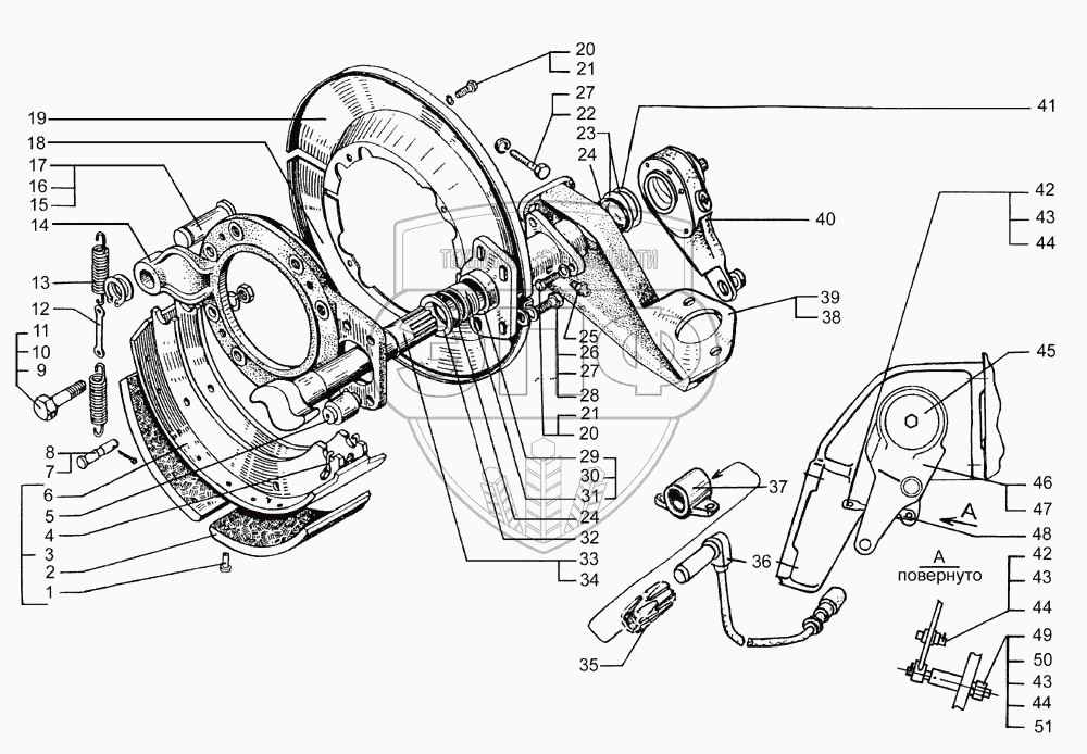 Каталог запасных частей к технике: КрАЗ-7133С4. Механизмы тормозные задние