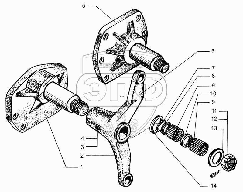 Каталог запасных частей к технике: КрАЗ-7133С4. Промежуточные рычаги