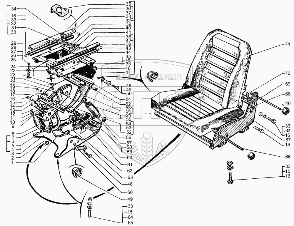| 32 | 6443-6801012-10 | Остов сиденья с механизмом регулировки | Нет на складе | |