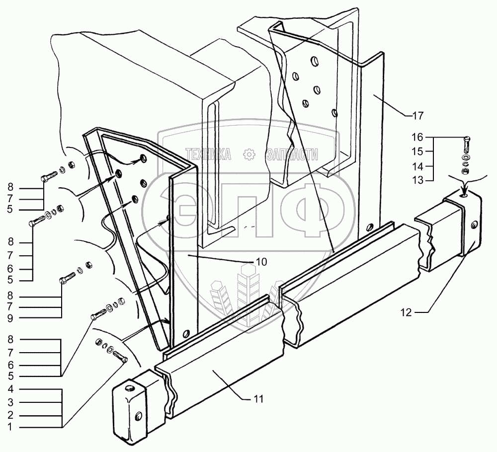 Каталог запасных частей к технике: КрАЗ-7133С4. Заднее защитное устройство
