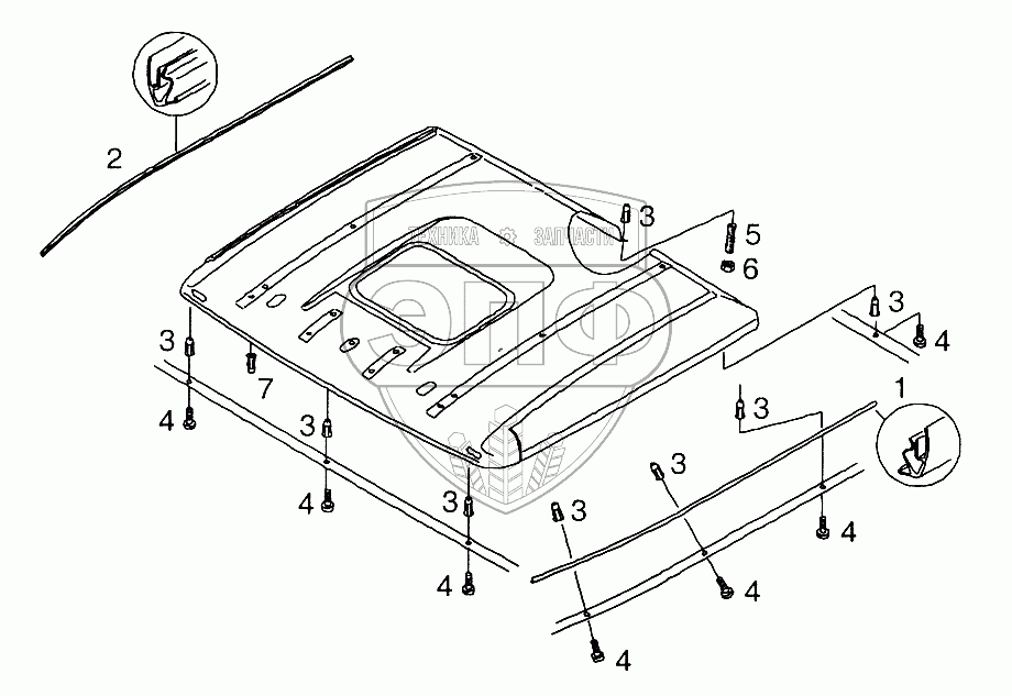 Каталог запасных частей к технике: MAN TGL. Крепление крыши