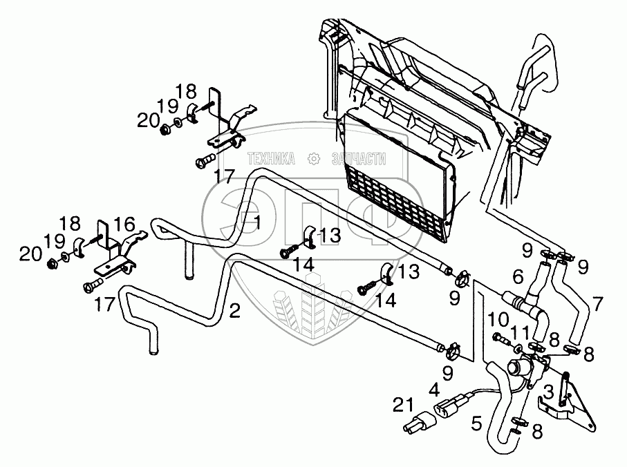 Каталог запасных частей к технике: MAN TGL. Трубопроводы обогревателя кабины