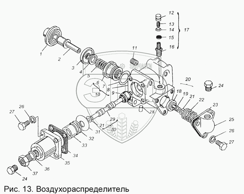 Каталог запасных частей к технике: МАЗ КПП МАЗ-543205-070. Воздухораспределитель