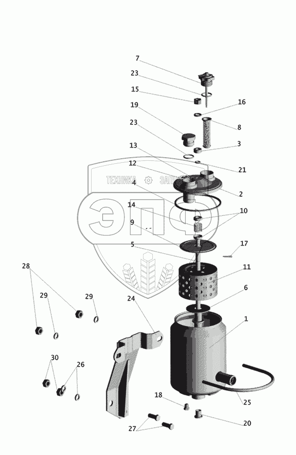 Каталог запасных частей к технике: МАЗ-437030 (Зубренок). Бак масляный 64221-3410008