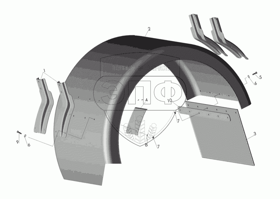 Каталог запасных частей к технике: МАЗ-437030 (Зубренок). Брызговик
