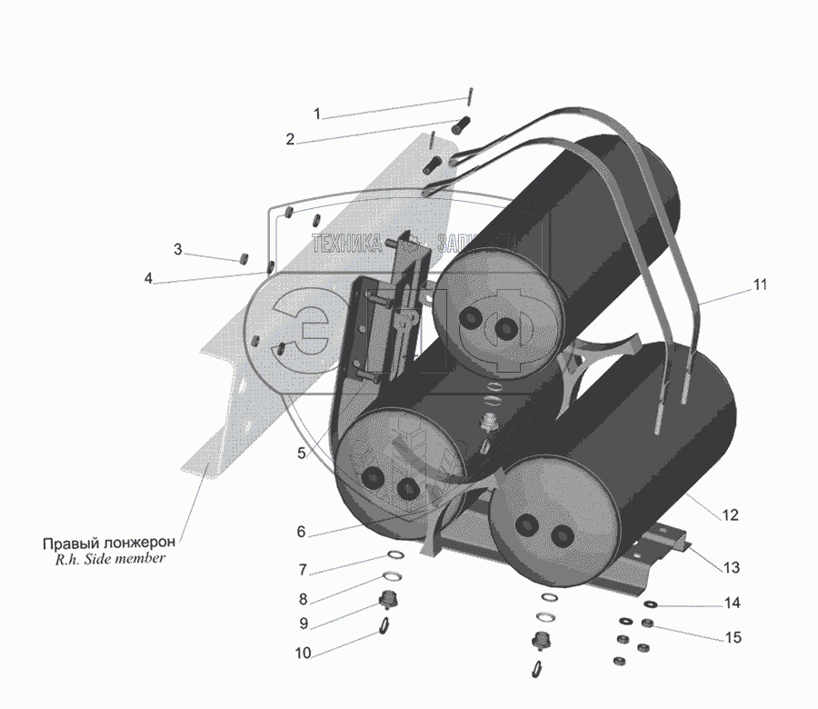 Каталог запасных частей к технике: МАЗ-437030 (Зубренок). Крепление ресиверов
