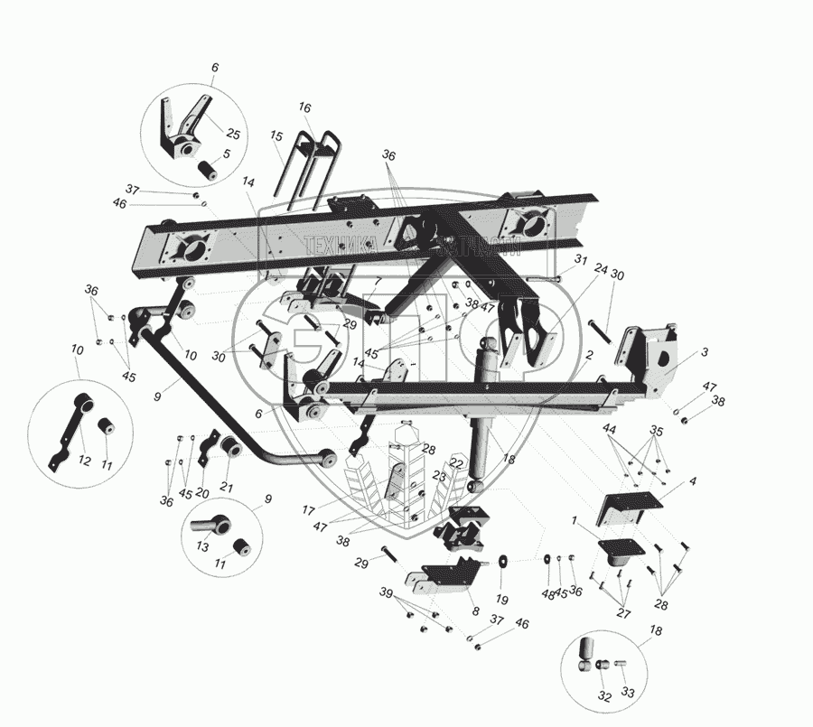 Каталог запасных частей к технике: МАЗ-437030 (Зубренок). Подвеска задняя 4370-2900002