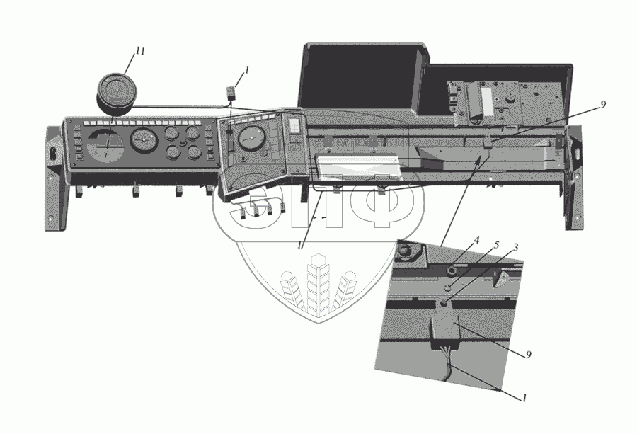 Каталог запасных частей к технике: МАЗ-437030 (Зубренок). Установка спидометра 437030-3800004