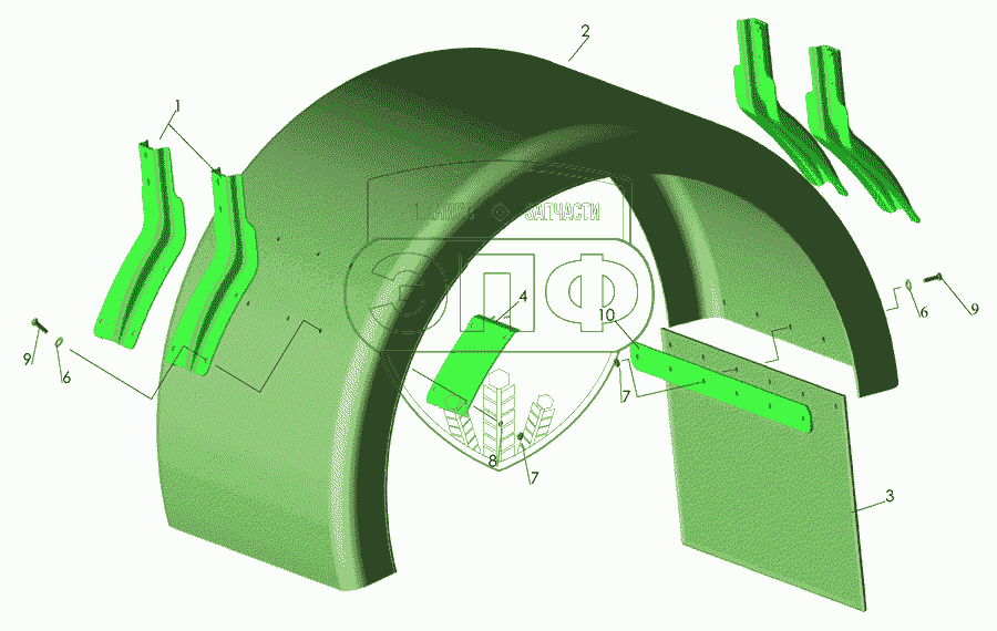 Каталог запасных частей к технике: МАЗ-437040 (Зубренок). Брызговик