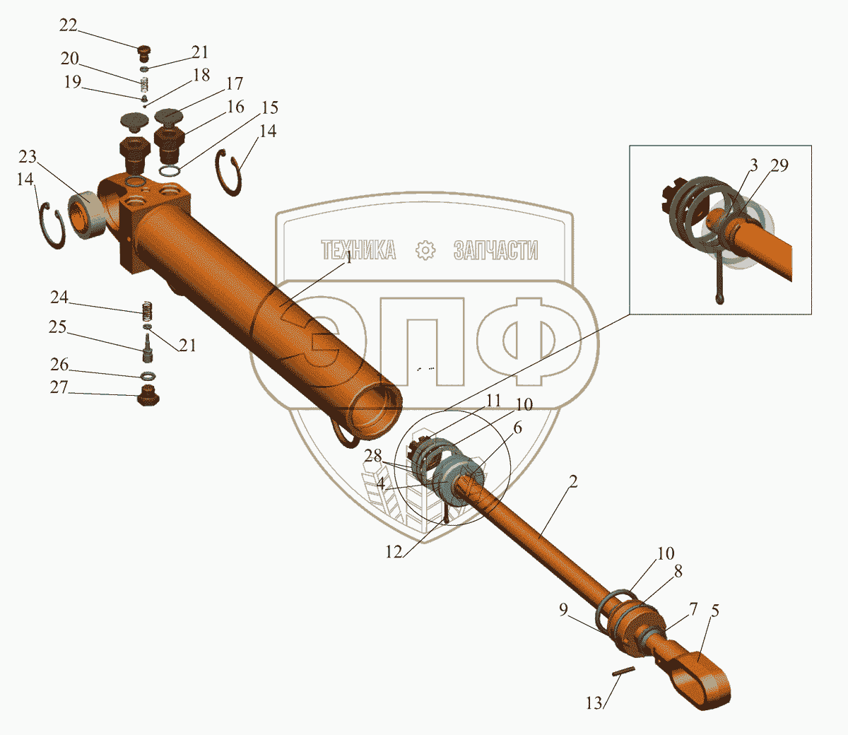 Каталог запасных частей к технике: МАЗ-437040 (Зубренок). Гидроцилиндр 4370-5003010
