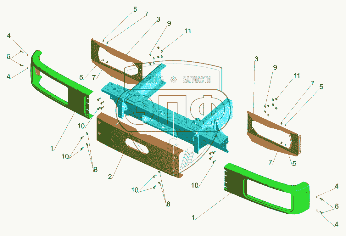 Каталог запасных частей к технике: МАЗ-437040 (Зубренок). Крепление бампера