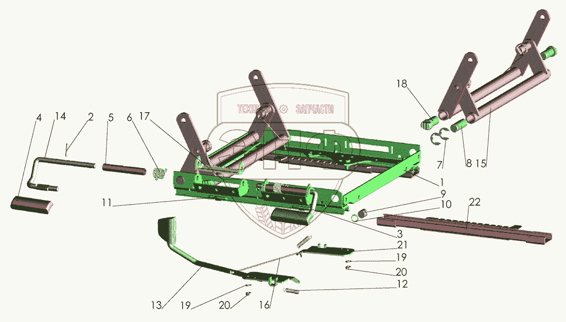 Каталог запасных частей к технике: МАЗ-437040 (Зубренок). Механизм регулирования высоты
