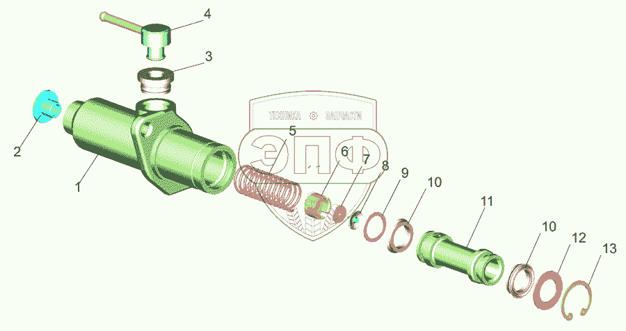 Каталог запасных частей к технике: МАЗ-437040 (Зубренок). Цилиндр подпедальный 6430-1602510