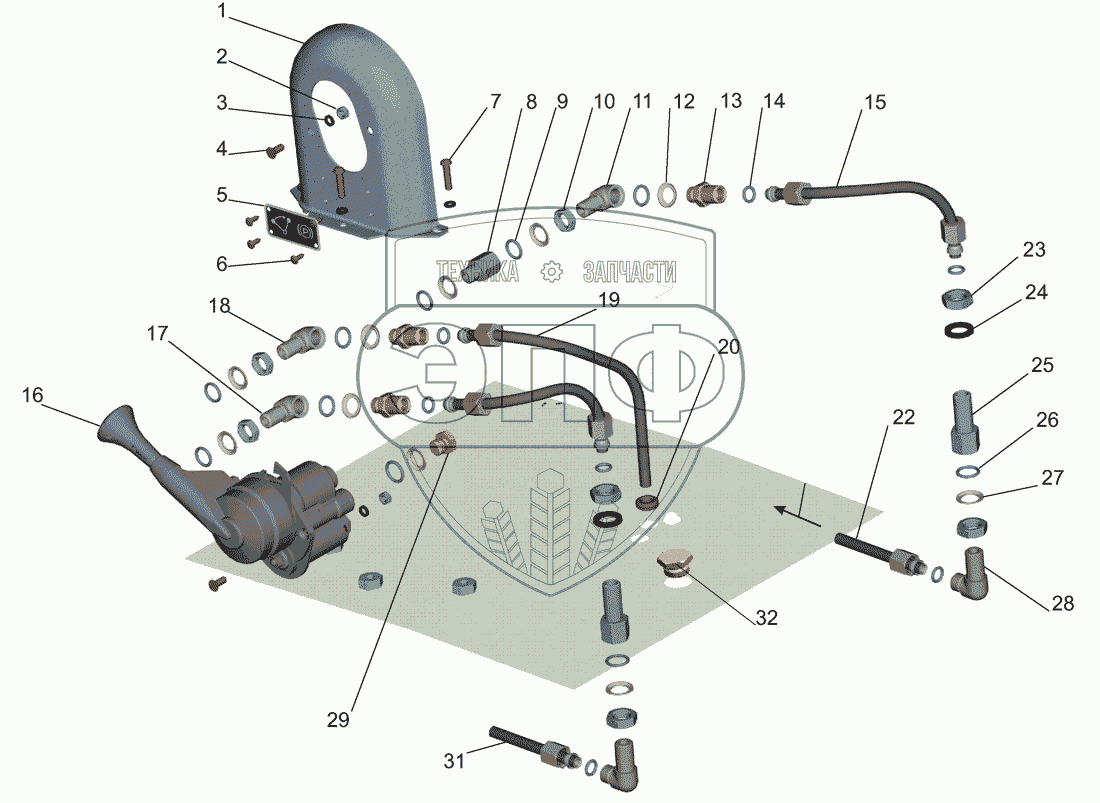 Каталог запасных частей к технике: МАЗ-437040 (Зубренок). Управление стояночным тормозом