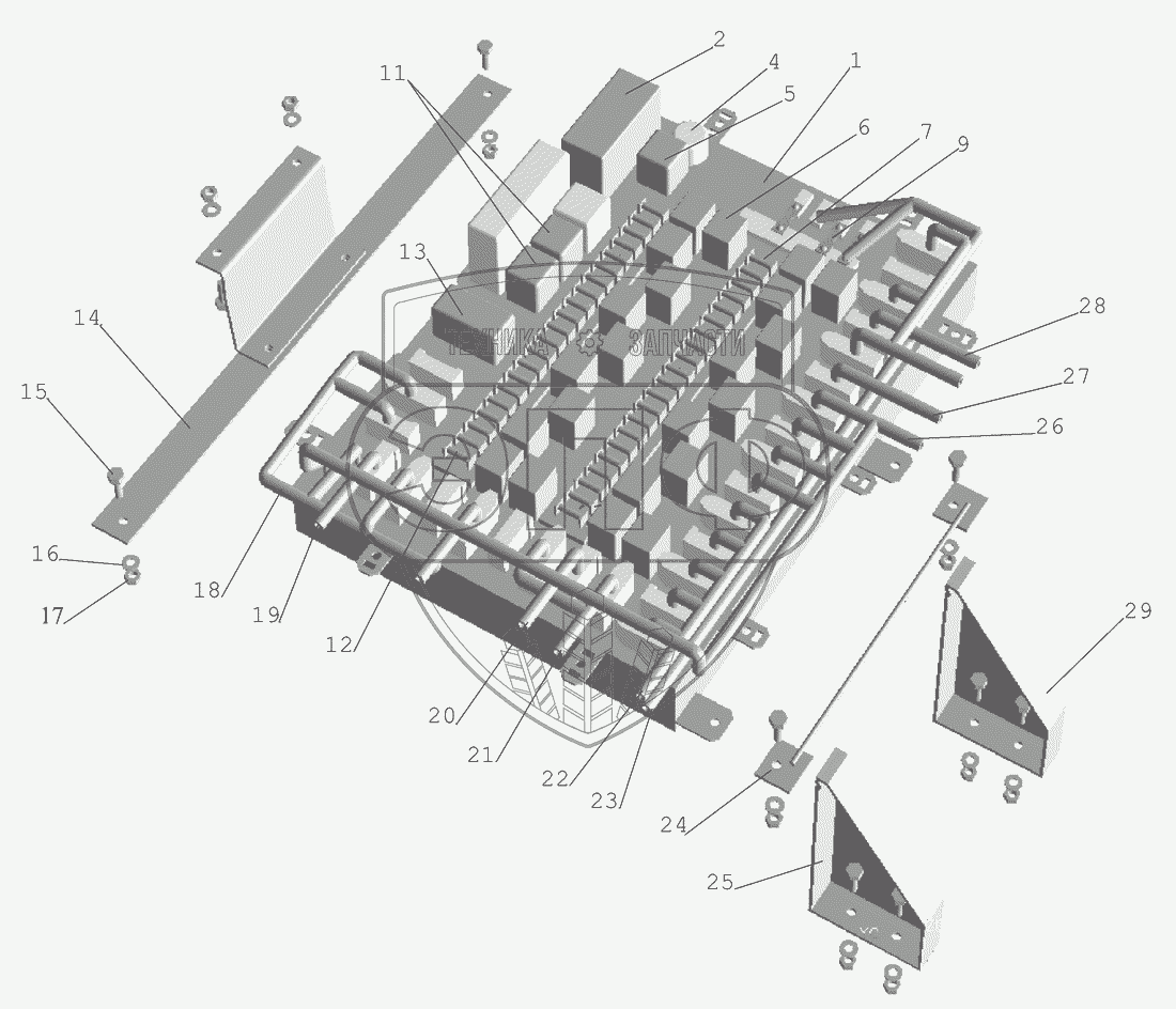 Каталог запасных частей к технике: МАЗ-437040 (Зубренок). Установка блока коммутационной аппаратуры