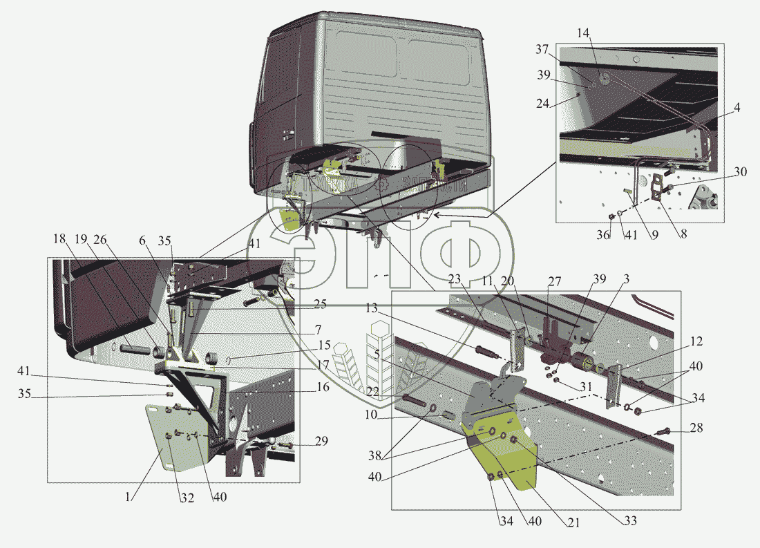 Каталог запасных частей к технике: МАЗ-437040 (Зубренок). Установка кабины 4371