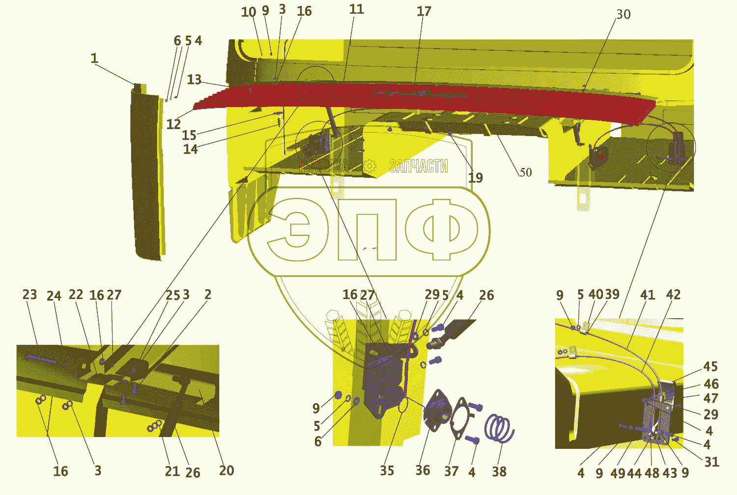 Каталог запасных частей к технике: МАЗ-437040 (Зубренок). Установка облицовки 6430-8400018