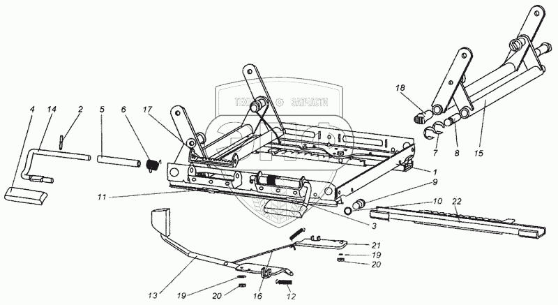 Каталог запасных частей к технике: МАЗ-437040 (Зубренок). Механизм регулирования высоты