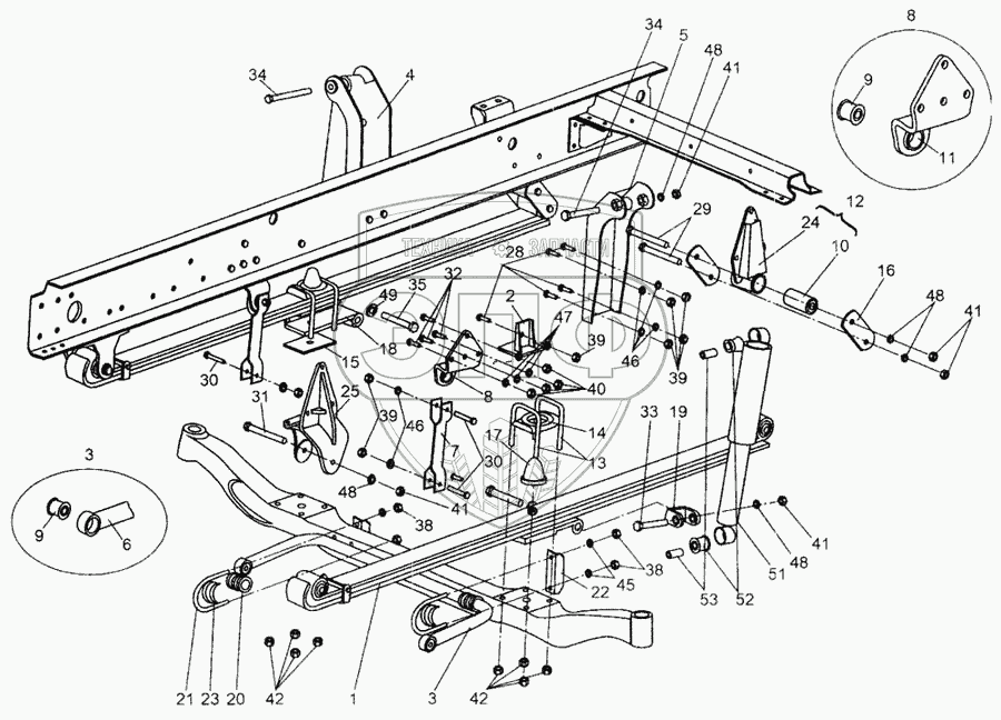Каталог запасных частей к технике: МАЗ-437040 (Зубренок). Подвеска передняя