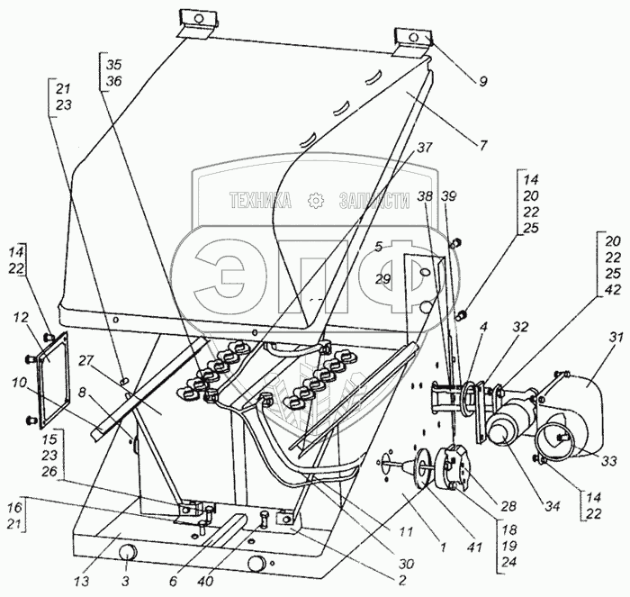 Каталог запасных частей к технике: МАЗ-437040 (Зубренок). Установка аккумуляторных батарей