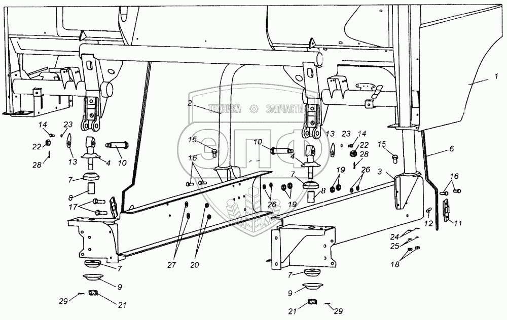 Каталог запасных частей к технике: МАЗ-437040 (Зубренок). Установка кабины