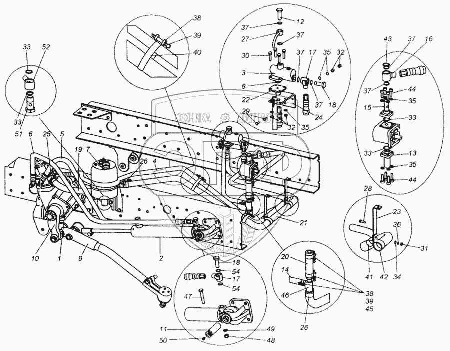 Каталог запасных частей к технике: МАЗ-437040 (Зубренок). Установка рулевого управления
