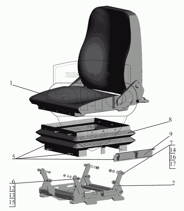 Каталог запасных частей к технике: МАЗ-437041 (Зубренок). Сиденье водителя 6430-6800010