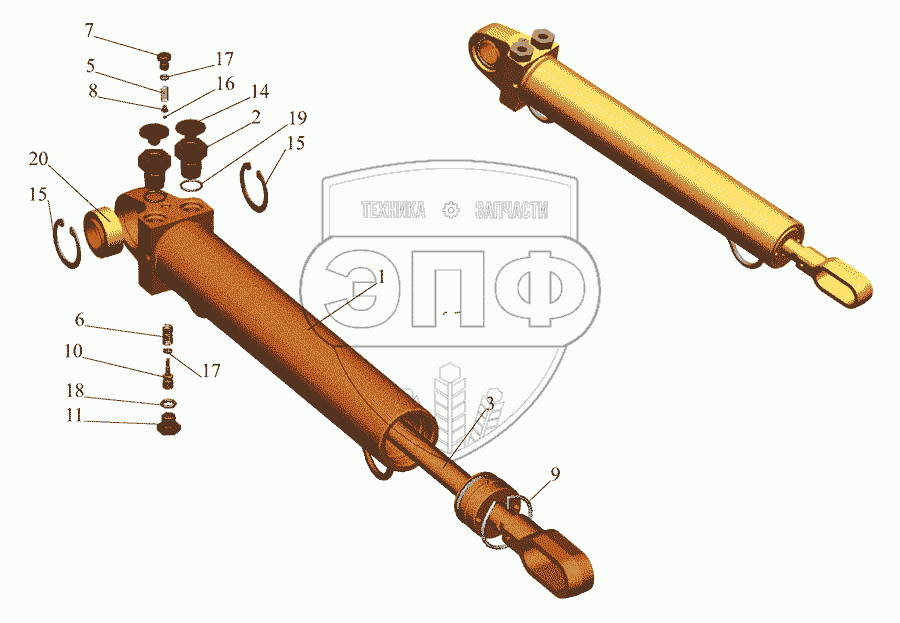 Каталог запасных частей к технике: МАЗ-437043 (Зубренок). Гидроцилиндр 4370-5003010