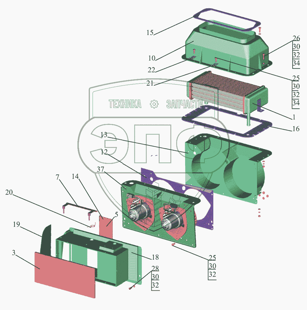Каталог запасных частей к технике: МАЗ-437043 (Зубренок). Отопитель 4370-8101010